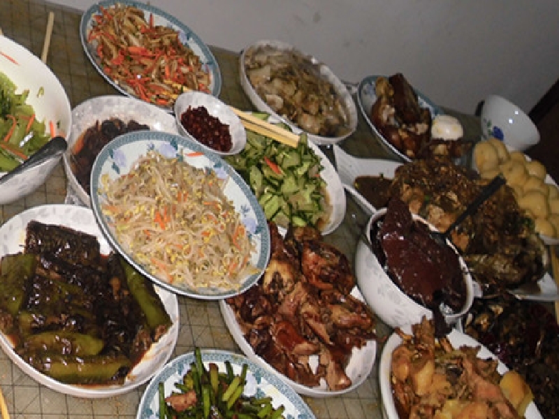 东北的年夜饭是一种艺术曲目。炖菜独奏、小菜伴奏、蒸菜协奏。千万佳肴在大年三十晚上一齐交响,形成气势磅礴的交响乐。交响乐于除夕这天晚上八点准时在鞭炮声中奏响。随着米饭的上桌,东北炖菜拉开了独奏的序幕。东北炖菜并不像川菜有一招一式,不像粤菜陷于一种模式,也不像鲁菜有其定量,更不像沪菜那么死板。东北炖菜的独特之处在于没有规定其样式、材料。在特大号的锅中炖荤煮素,味道更是百变,如炖山菇小鸡是一味、炖猪肉酸菜是一味、炖豆腐是一味、炖脱水芋粉条又是一味。在炖的过程中加入血肠、泡椒、老姜,既能使菜鲜美,又能让人面对严冬不再寒冷。而大锅炖菜需用干柴烧,说是能荤素入味,但我而言,仅仅被熏得龇牙咧嘴,泪流满面了。