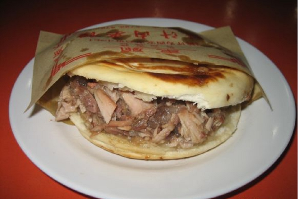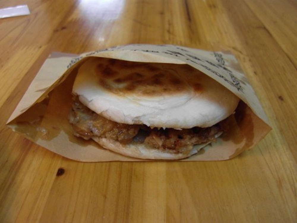 肉夹馍,是用烤制的面饼,中间用刀划开,夹入卤好的酱肉,再淋上肉汁,撒上香菜等,咬一口喷香。感觉应该叫馍夹肉才对,但肉夹馍不知是咋叫起来的。可能世间最好的搭档里就应该有肉、夹馍,酱肉加上烤制的面饼吃起来是一种回味悠远的香甜。