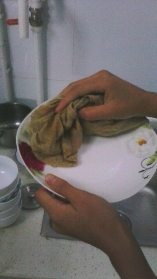 接下来呢,就是要用一块厚厚的抹布擦拭,一定要把碗上的水擦干净。看着被我洗的干净的碗,我的心灵也就被西干净一样。
