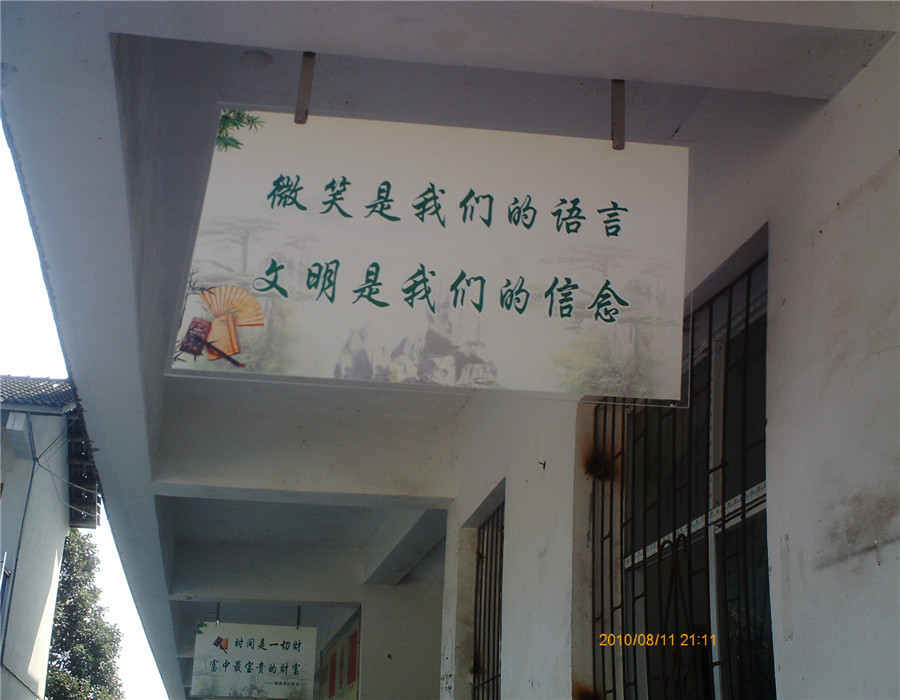 当我们走进校园,到处转转时,就会看见在教学楼的每一层,都会有一个玻璃牌,上面写着一些标语有些是我们学过的,而有些是我们见也没见过的。
