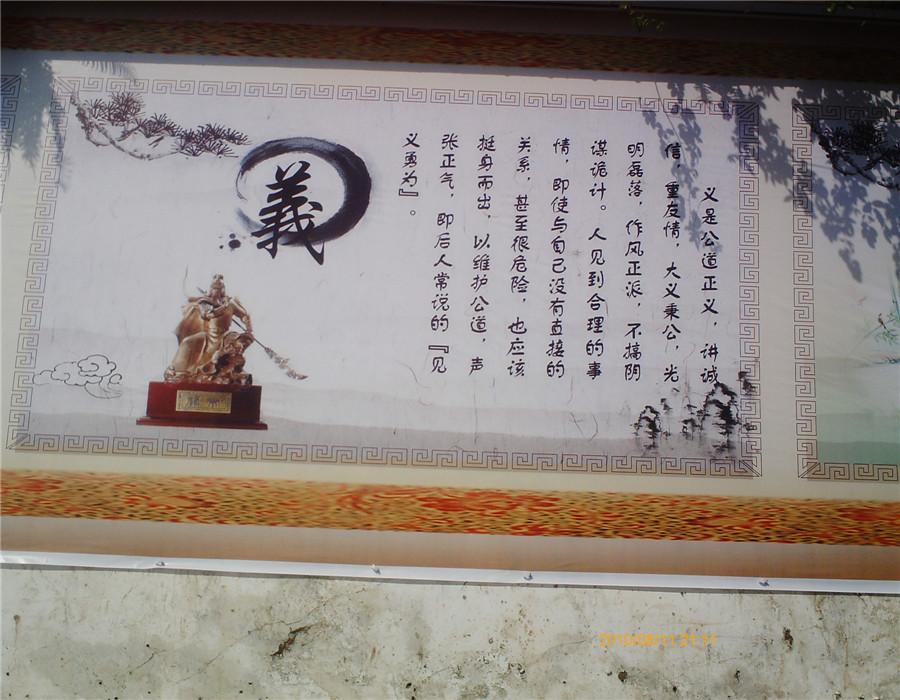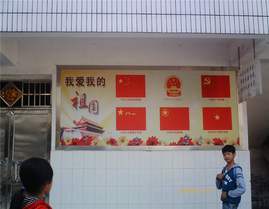 那上面不只有字,还有图画,在初中这边是松,而在小学那边就是梅了,而这些和那上面的字便汇成一个漂亮的玻璃板,这也让我们有了增长知识的园地,哈哈!漂亮!