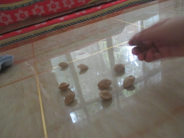 抓瓤是一种在农村盛行的一种游戏,通常“瓤”都是用杏仁或石子做的,每次最少都需要五个才能玩。