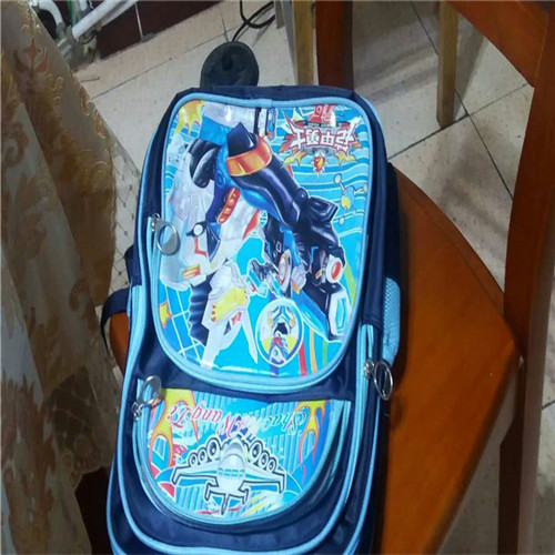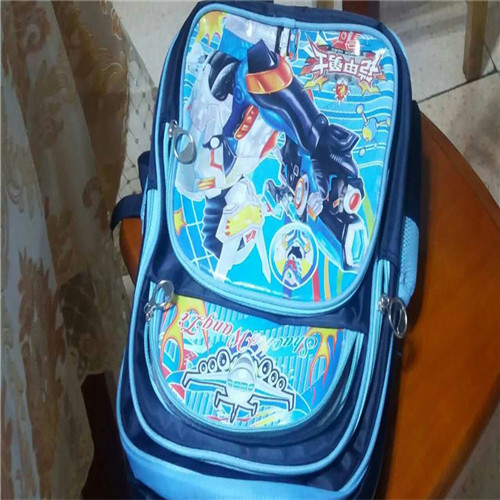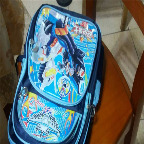 我的书包总体上是蓝色的,上面的图案有红色、黄色、绿色、蓝色、紫色、银色、土灰色、就像彩虹的颜色一样漂亮极了。