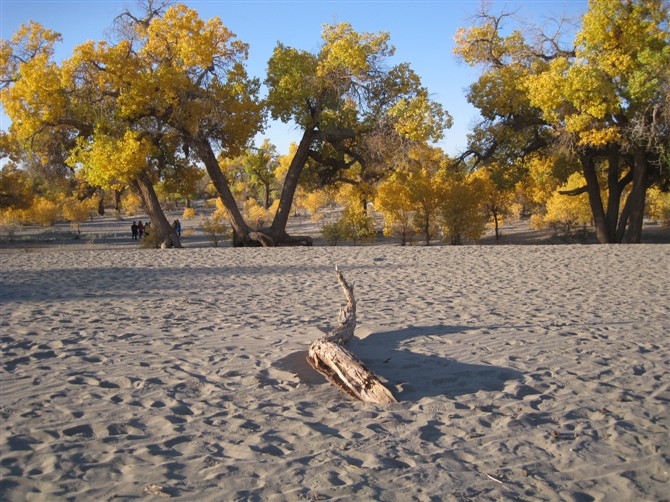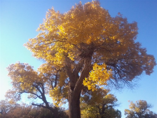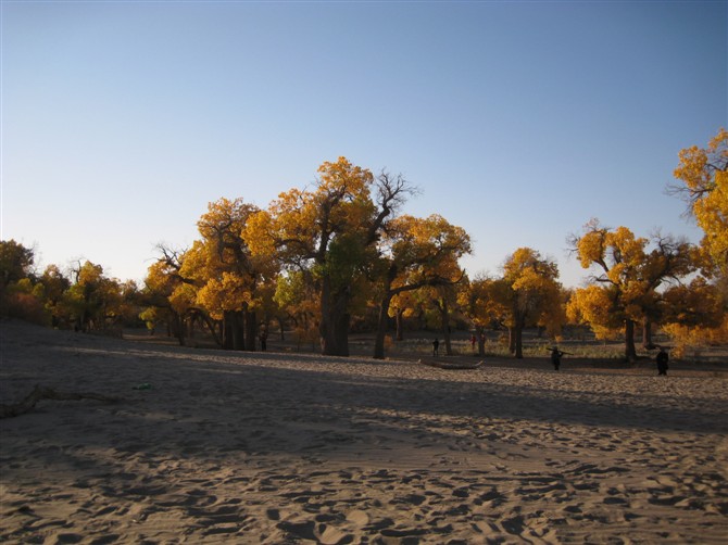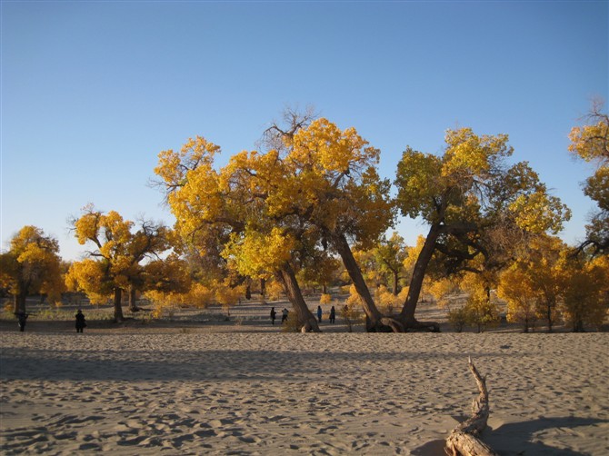 正因为有这些好看的胡杨林,才使得沙漠没有退化,并且这些树一代代在这里扎根,它们耐得住寂寞,却把自己最华丽的一面展示给游人,展示给大自然……