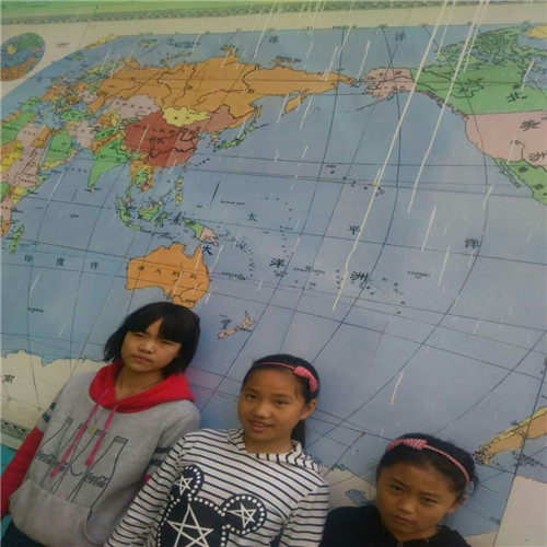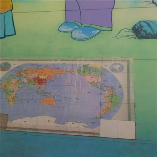 我喜欢这张地图,我经常下课了都要到那里去玩,和同学们一起去看这张地图。 我发现这张地图真有趣,它的颜色也是五颜六色,黄色是一座座高山,绿色是一望无边的平原,白色是很冷很冷的南极和北极,蓝色是浩瀚的海洋。 我们学校的墙上