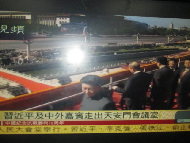 当国家主席习近平和他的夫人彭丽媛迎接外宾,及几十个国家的领导人站在端门拍照时,这进一步证明了,人们对革命先烈的缅怀和对和平的美好向往。当检验三军部队,老一辈的红军走过天安门,向我们招手时格外阳光焕发,他们是我们学习的榜样。