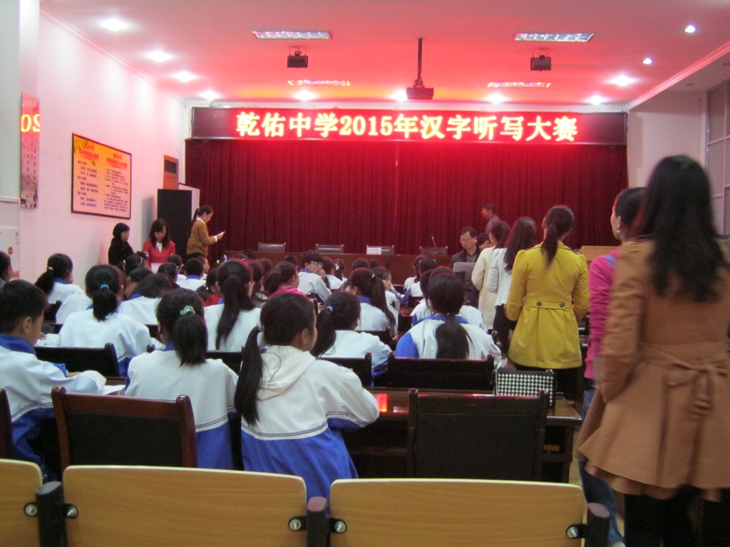 一年一度的汉字听写大会开始了,同学们有的怀着渴望,有的怀着好奇的心情迎来这一乐趣无穷的活动。老师和同学们陆续进入会场,大家的神情不免有些忐忑,但为了荣誉,又倍增信心。