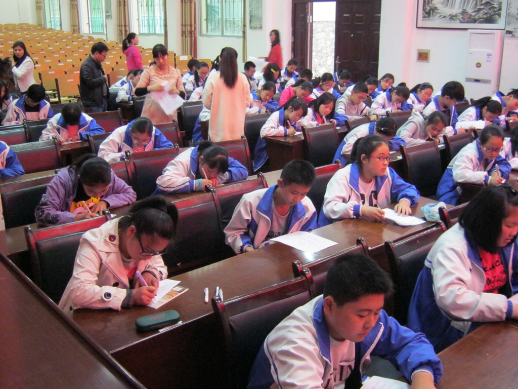 开始听写了,随着男老师洪亮有力的读字声,和女老师甜美的解释字词的声音。学习好的同学露出自信的微笑;反之,面如土灰,想抄袭别的同学的,但由于老师那犀利的双眼,那念头也就消失了。