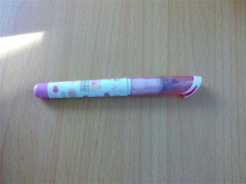 在我的笔袋中有一只粉红的钢笔,这是我的朋友送给我的生日礼物,我现在十分的喜欢这只钢笔。它的结构十分的复杂。从装墨水的地方到笔头没有东西连接,真搞不懂这是怎么回事。我喜欢它不仅是因为它好看还因为他用时十分顺手。