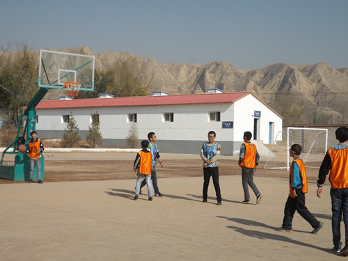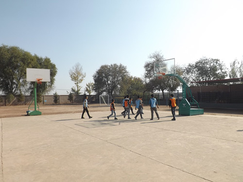 同学们换上了学校购买的训练服,一方是蓝色一方是橙色,这个球服可不是给同学们的,哪个对比赛哪个队伍就穿上,比赛完了以后要还给学校的。