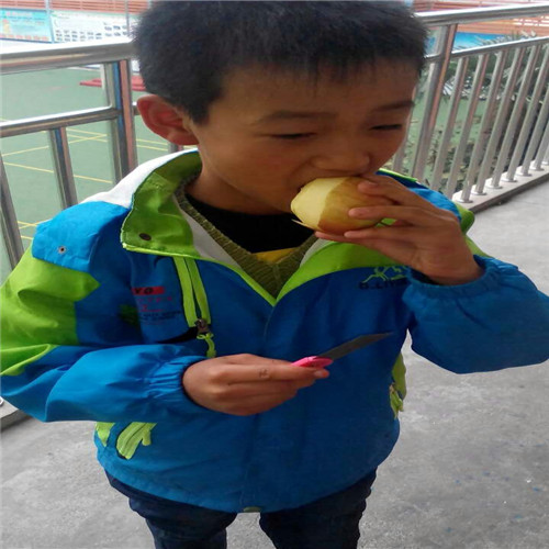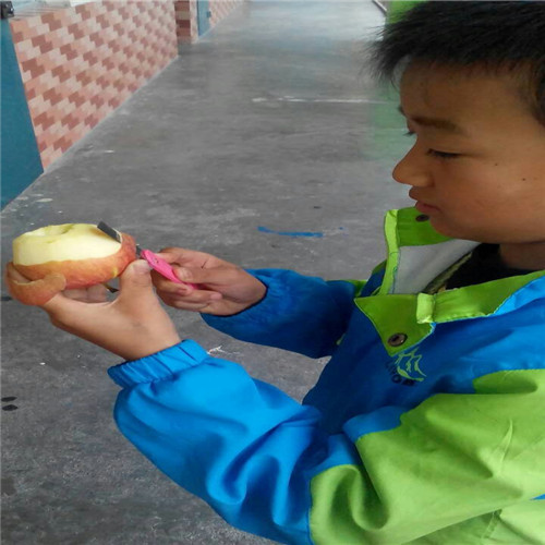 我就用小刀把苹果的一边削了,刚吃甜甜的,虽然有的苹果皮坏了,但我知道他的里面是好的。