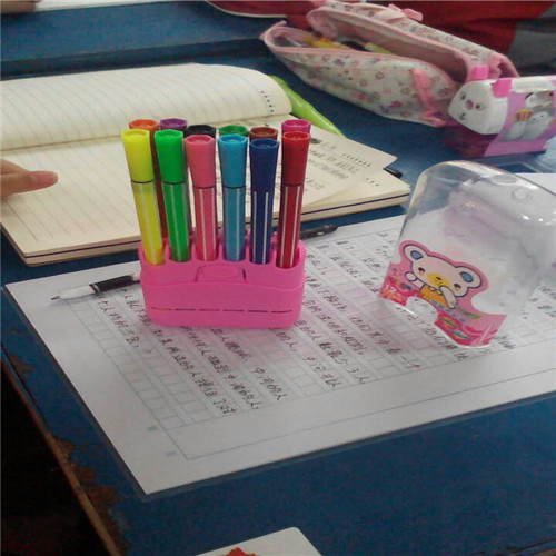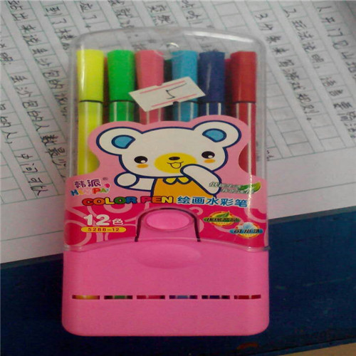 前几天,我买了一盒新彩笔。有黄色的,有绿色的,有粉红色的,还有蓝色的……一共有十二色。