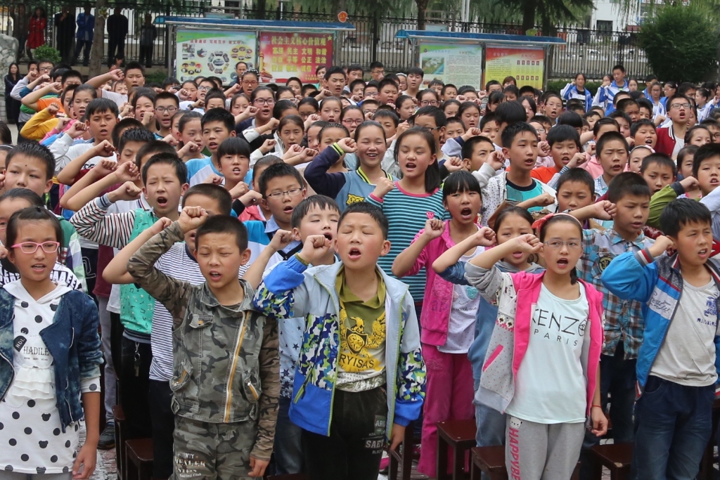 送走了九年级的大哥大姐们,我们步入上了八年级,又迎来了阳光朝气的七年级,他们个个都很阳光。一见到他们便会有一种快乐的心情。瞧,他们正在努力而庄严地宣示着。看着他们欢乐的小脸蛋和小小的粉拳,我相信他们一定会有辉煌的成果。