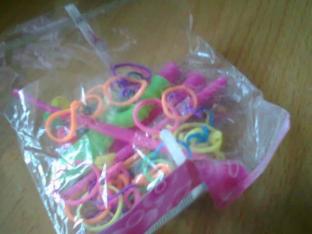 超市里有卖制作手链的材料,并且,可以通过自己动手来制作手链。材料不是很贵,一袋五角钱,里面装有个种各样颜色的圆环。
