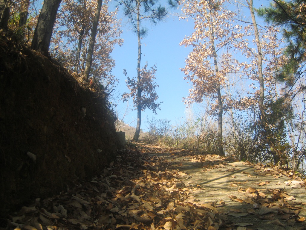 故乡的路一点也没有改变,依然是记忆中的路,顺着路前行,熟悉的景物映在眼前,我向 前跑去,突然前面路断了,新鲜的泥土翻在外面,几块地基散落在上面,像刚入秋的树叶翩翩落下。