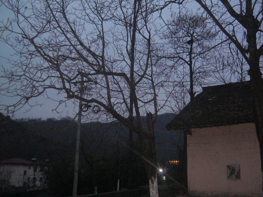 已是到了傍晚,天色慢慢暗了下来,故乡大多时候都是安静的,到了傍晚更是寂静,有几户人家门前亮着灯,淡淡的橙黄色光撒在门前,大概是在等还未回家的孩子吧。