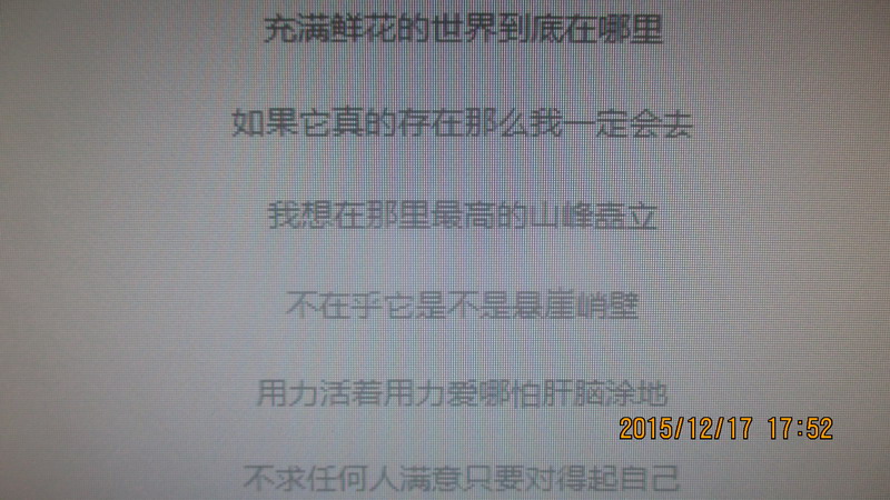 \'\'充满鲜花的世界到底在哪里 如果它真的存在那么我一定会去 我想在那里最高的山峰矗立 不在乎它是不是悬崖峭壁 用力活着用力爱哪怕肝脑涂地 不求任何人满意只要对得起自己\'\'这首歌的歌词深深地震撼了我,此前只觉得音乐的伟大莫过于曲调与曲风之良,竟从未觉得原来歌词才是一首歌的灵魂所在,更是一首好歌的真正精彩,句句入耳,字字入心,我有品味了这首歌的意,这是歌者内心的呐喊,是追梦之人那一颗赤诚之心的真实体现。