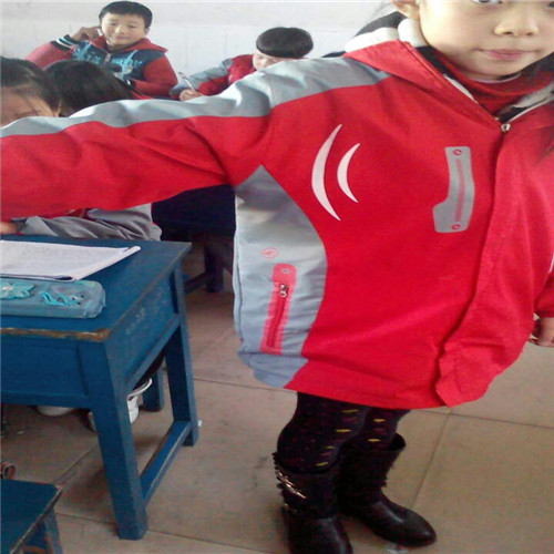 它穿在我的身上,不仅仅是暖和,也代表了我是迪英小学的学生。它是由灰色和红色混合而成的,它的背后有六个字"渭南迪英小学"每次升国旗时我就会穿上它。每次参加活动时,我也会穿上它。