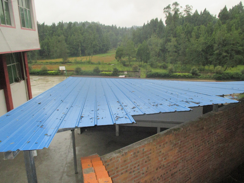 在洗碗的上方修了一个雨棚。我们以前在下雨天只能冒雨洗碗,现在,再也不用淋雨了。还有,混凝土被淋湿后,容易滑倒,有了雨棚,将雨送往其它地方,就不会被淋到了。