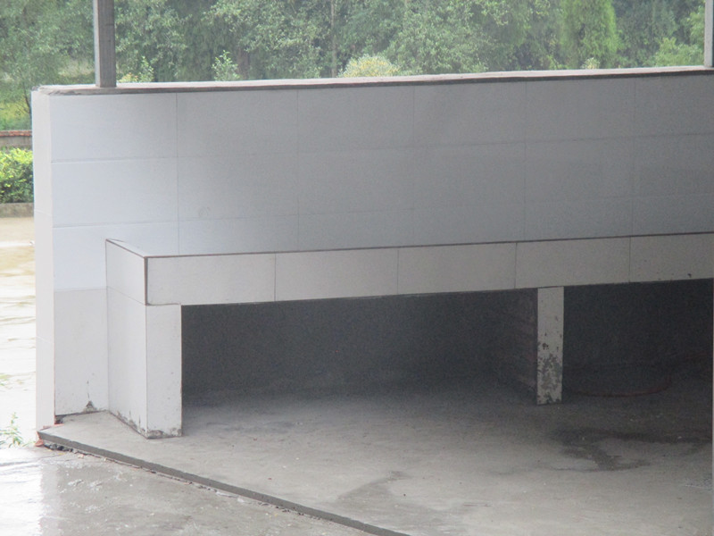 为了美观,工人还把几面墙都贴上了瓷砖。瓷砖的颜色是白色,白色代表圣洁,纯洁。而且贴其它的颜色,眼花缭乱。美景,让人欣赏时眼花缭乱,是一种美,而瓷砖让人眼花缭乱,无疑是有害无益,所以,贴白色刚刚合适。