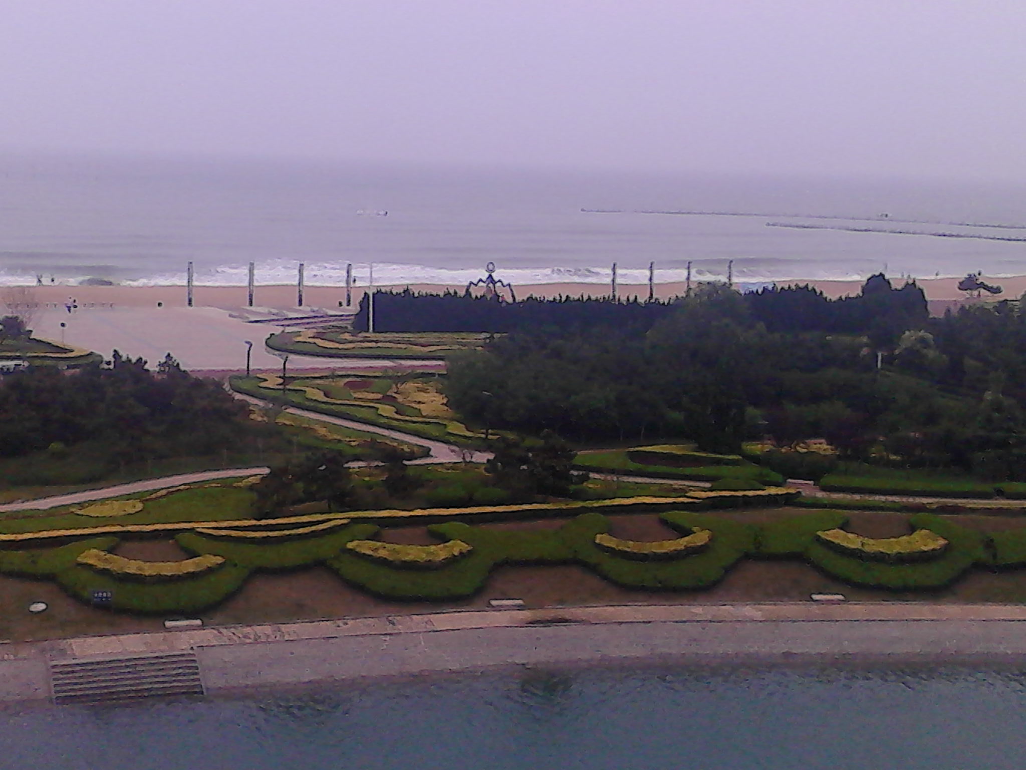 虽然我们去的那天天气并不是很好,但这丝毫不影响我们的快乐。本来已经舟车劳顿的我们,见到海,我们立刻兴奋起来。虽然,我们人在海战馆内参观,但我们的心已经飘到了海边,真可谓是"人在曹营,心在汉"呀!终于参观完了,我们早已迫不及待了。得到了导游批准的我们,像鸟儿一般,向海边冲去。