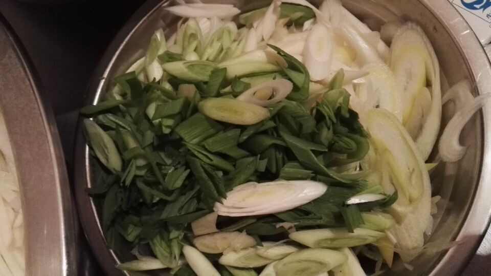 接下来,把煮完萝卜的大锅洗干净,然后倒入适量的水,再取适量的萝卜倒入水中,等到水沸腾之后,在水中放入一些碎粉条,先让它煮一煮,等到粉条快要熟以后,再把肉片放入水中(如果没有肉片,可以用肉丸子之类的东西代替。)然后,在锅中放入一些调料(按个人口味添加。)最后,在上面撒上一层绿油油的葱花搅拌均匀,这样,萝卜菜就做好了。