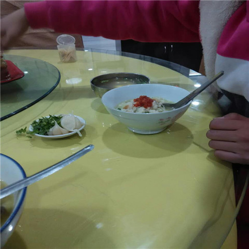 把羊肉煮馍放在桌子上,闻一闻,啊!真香!真是让人迫不及待地去吃它。再配一盘糖蒜。真是好上加好。咬一口,那软软的感觉,会让你在嘴里嚼个不停。等你全部吃完时。你的肚子肯定会很饱,可是你的嘴还是会不由自主的吃。