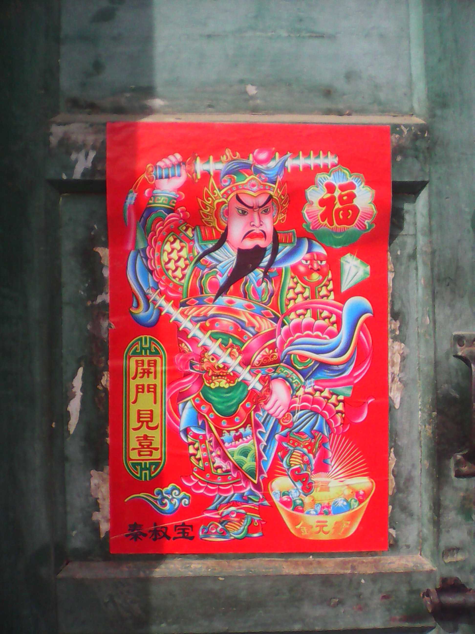 首先,正房的门两边分别贴上联和下联,门上面贴横联,正房一般有两扇门,做门上贴秦琼,左门贴敬德,他们都是唐朝时期有名的大将,死后传说成了皇帝的守门神,于是民间从此也在门上贴上了门神让他们守护自家,这是正房的贴对联规矩。厨房就比较简单了。对联的贴法于正房一样,不同的是,厨房大多只有一扇门所以不贴门神,贴“福”字。而且这“福”字必须倒贴在门中心,寓意:“福到了”。将上面所说的这些都做完后,放一串鞭炮就可以吃午饭了。