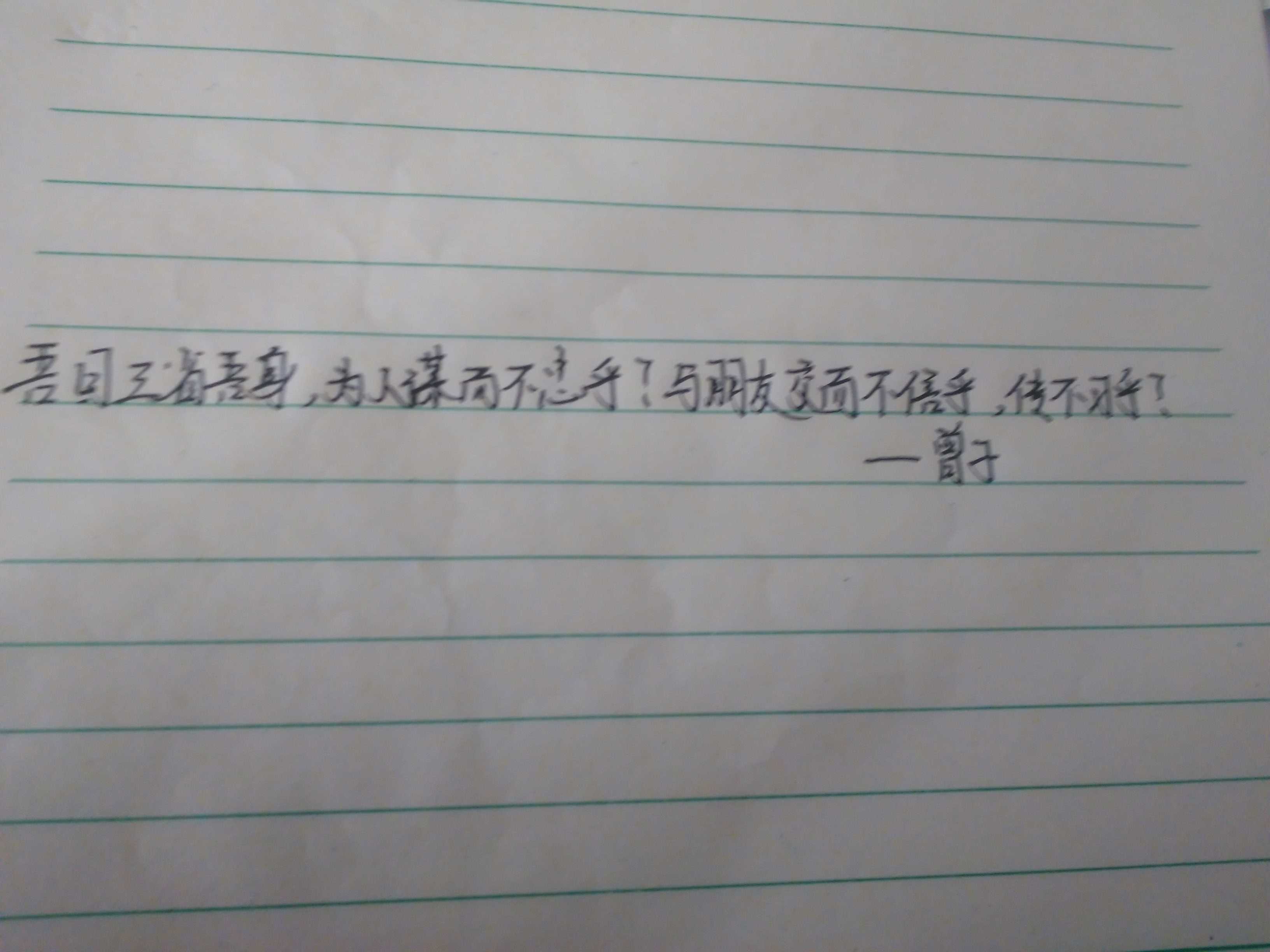 古代许多帝王能统一天下,除了统一天下的雄心,更重要的是时刻反省对错。他们约束并不断改正自己,故而完成了自己的霸业。我们不是更应时刻反省?人无完人,但要是处处反省,也可以十全九美。为一个完美的自己,不是应努力奋斗吗?我会以"三省吾身"规范自己,我相信,我可以做得更好!