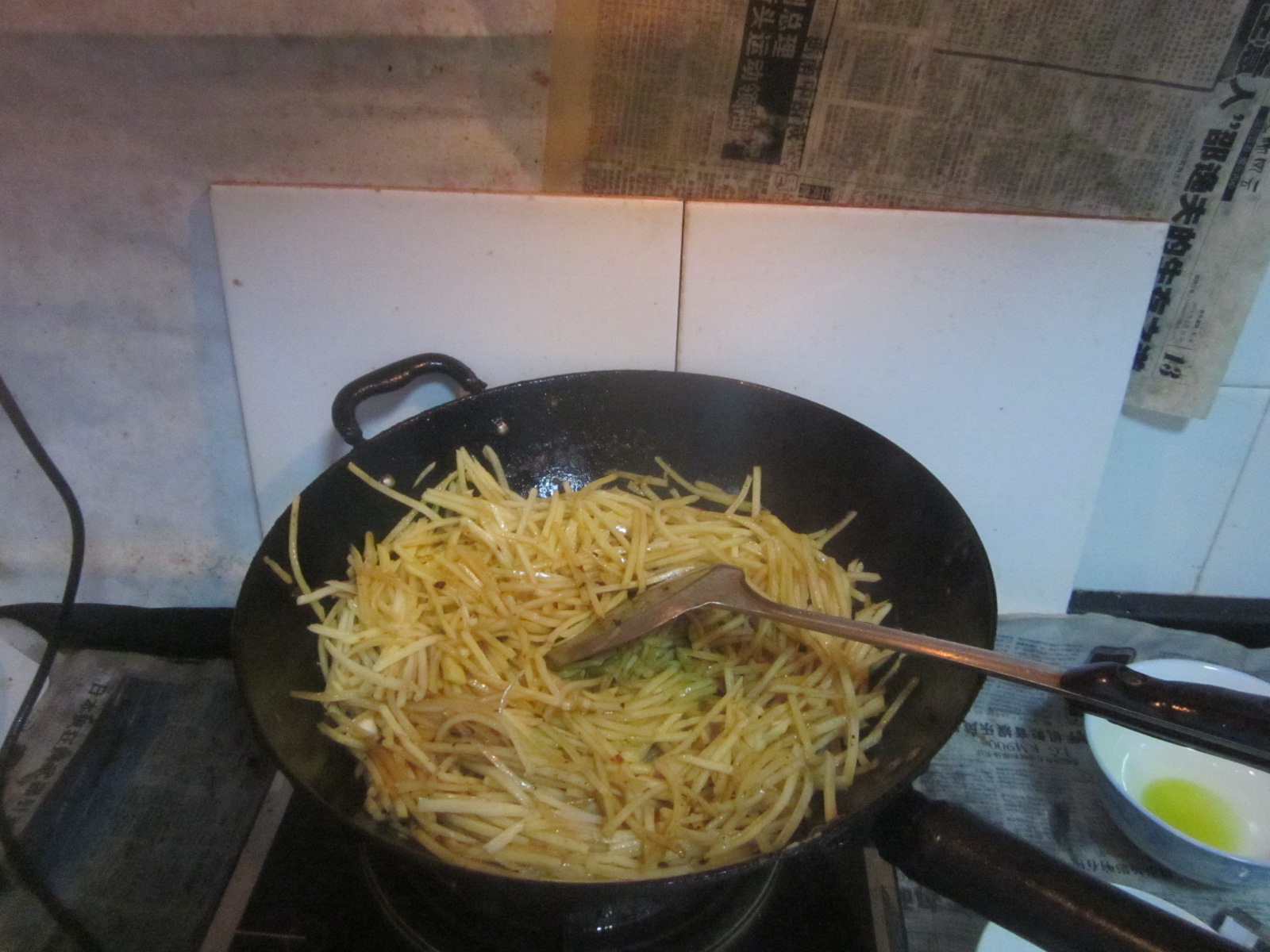 无奈老爸又做了一道菜,叫干煸土豆丝,也还行吧!这正合我的胃口,狼吞虎咽,吃饱之后赶回学校上课了,说实话,老爸土豆丝还真好吃!为老爸点赞!