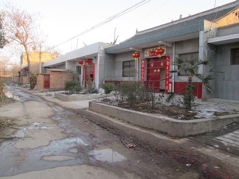 红色,在古代代表的是吉祥、美满,它有美好的寓意。这样看起来,平日里单调、枯乏的村道,也变得更加鲜亮,更加富有生机,给人以祥和、美满……