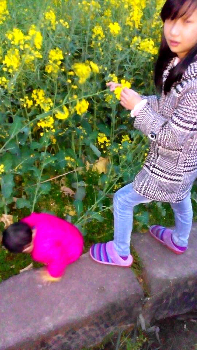 大约过了二十分钟,爸爸停下了。此时,我看到了一个金黄色的天地,放眼望去,全是油菜花。我已经迫不及待地跳下了车,向田野奔去。来到油菜花旁,我一会儿闻闻这朵,一会儿闻闻那朵,油菜花真香啊!我正想问问妈妈这油菜花的味道好闻不?结果扭头才发现,咦,怎么少了一个人?哈哈,原来是矮小的妹妹已经被油菜花给淹没了!我快乐地在油菜花地里跑来跑去,妈妈就一个劲儿地叮嘱我别弄坏了油菜花,不然油菜花就不会结果,以后就收获不了菜籽油了。我听了妈妈的话,不再乱跑,可是如此美景,怎么能不留个影儿呢?这时爸爸很乐意地充当了我们的摄像师。可惜,没有多带一个摄像师来,不然还可以照张全家福了。