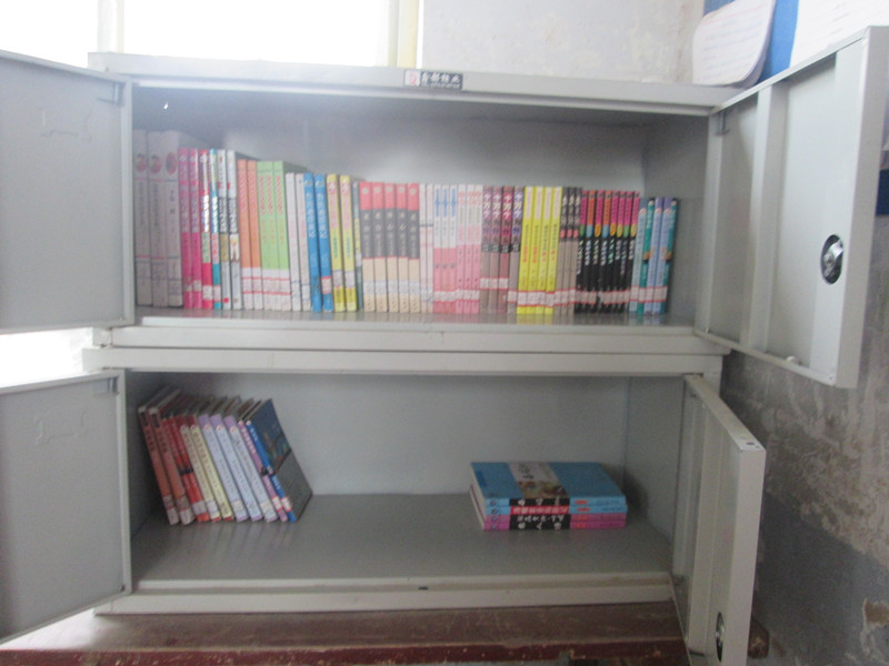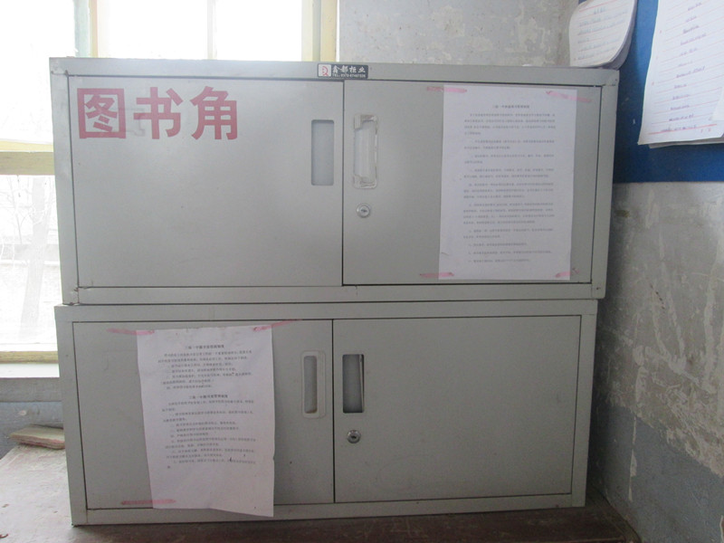 在我的教室里,有一个图书柜,图书柜放在教室的一个角落里的桌子上。