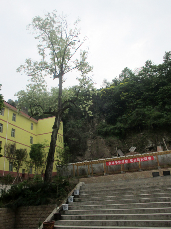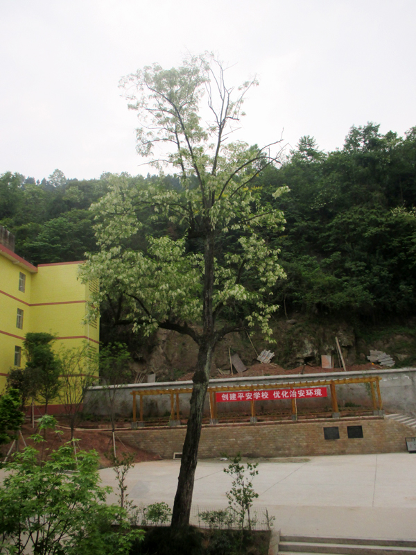 在我们学校的一个小平台上,有一颗大树,虽不知道它的名字,我只知道它陪伴我们学校度过了几十年的时光。