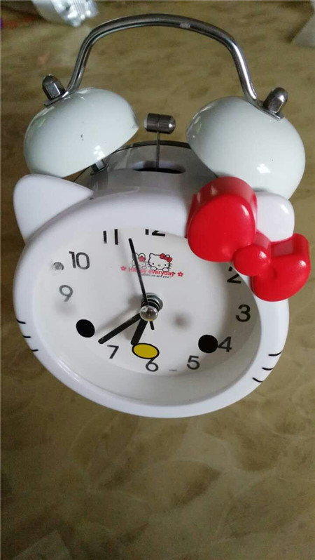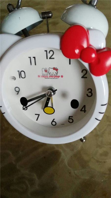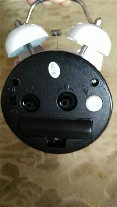 我把它放在我的床头柜上,每当它响时,我一伸手就可以摸到它的开关了,它不只是白天才能用,它在晚上可以利用它后面的灯开关让它亮起来。