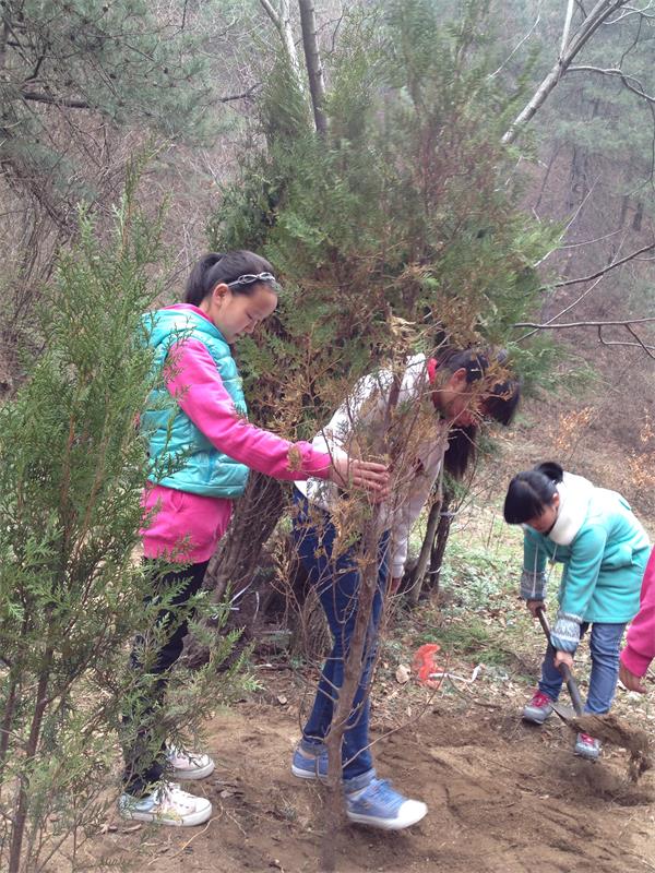 有了阮老师的亲身示范,这样我们种起树来就有了一些技巧。接下来的40分钟里,大家挖坑的挖坑,铲土的铲土,提苗的提苗,各尽所职。老师在一旁看着我们,欣慰的笑了。