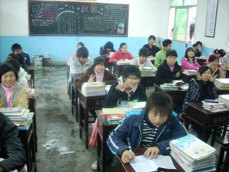 这就是我们班的第一个大的特点,学生非常活泼,尽管书桌上都堆满了书,学习非常刻苦,还能整天笑容满面.
