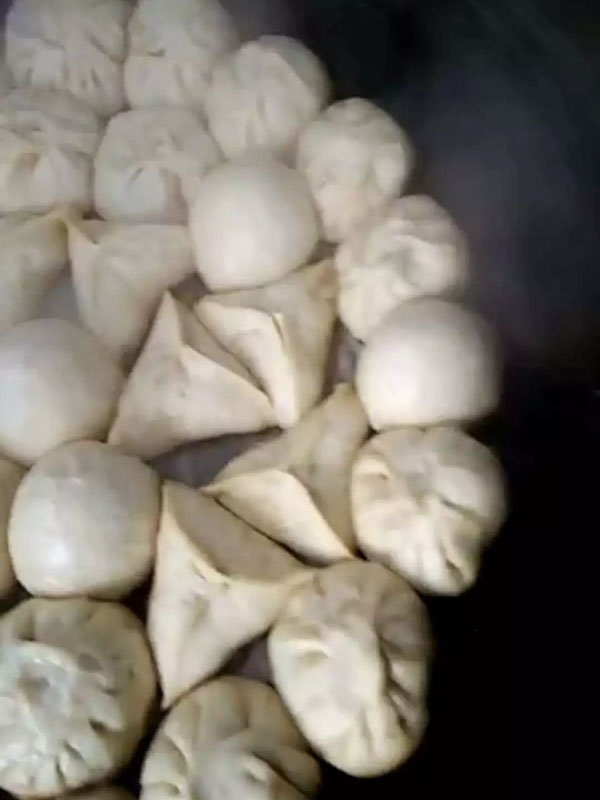 每到逢年过节的时候,孃孃们家里才会包包子。这里面不光有包子,还有馒头和糖角角。第一锅出来的时候,弟弟已经按耐不住了,刚刚出来就拿了一个包子吃。然后又烧的放在了桌子上。呵呵。
