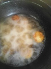 首先锅里烧水至沸,把面倒入锅内,待面喷起泡时,将面均匀撒在滚烫的开水里,用擀面杖或顺或逆时针朝着一个方向不停的搅动,直到搅不动为止,做油糕的面团就可以了。接下来就是做油糕的过程了,掐一小块面团,放在手里拍,拍到一定的薄度,放上一小匙白糖,三弄两弄,就看到一个圆圆的白糕子做成了,顺着油锅那么一滑,等一分钟,翻个身,在等一分钟,用油笊一托,金黄的冒着白气的油糕熟了,放在铁皮板上剁几下铲入碟子,撒上白糖,老远就可以闻到那酥甜的味道。