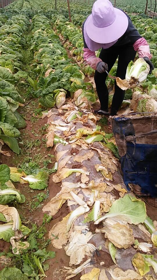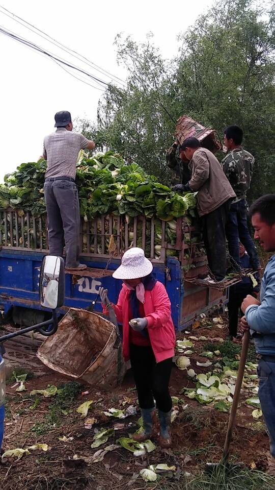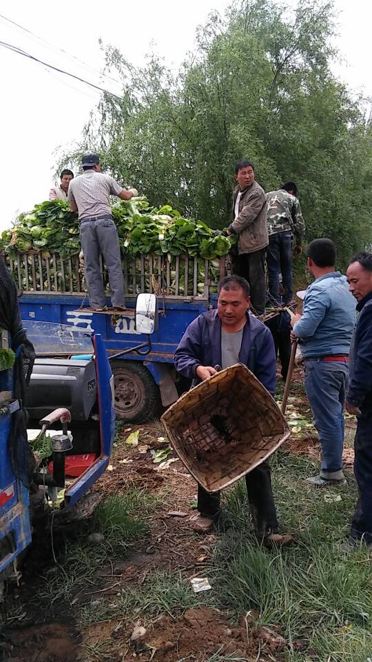 第二天一早,爸妈便起床去地里,等菜贩子来拉菜。前一天晚上下了雨,地还很泥泞呢,但装菜是不能拖延的。 装菜讲究分工明确,先要有人铲菜,用铲子把菜铲下来装到背斗里,然后再用背斗背到三马子旁,这要走一段路程,车上的人把背斗从人们肩上取下来放到车上,把菜取出来码好,再把背斗重新交到背背斗的人的手里。不一会儿,一大片菜已经装完了。