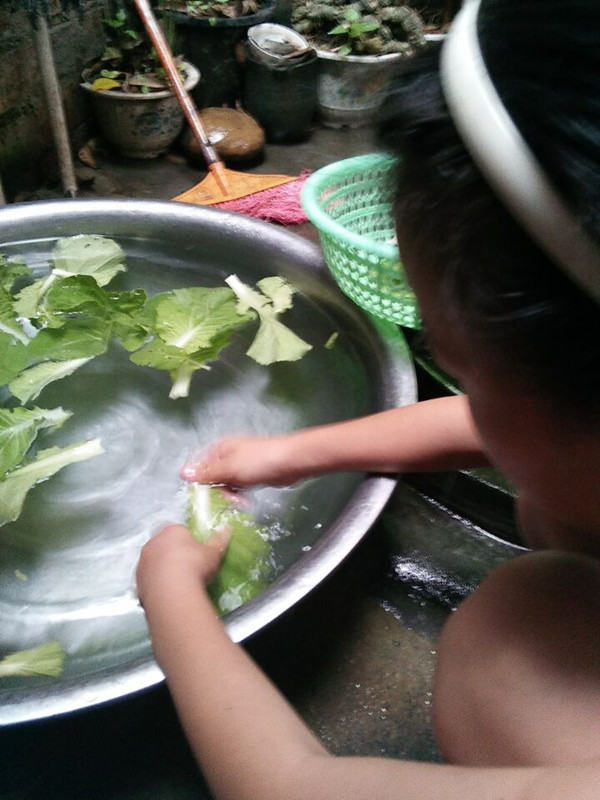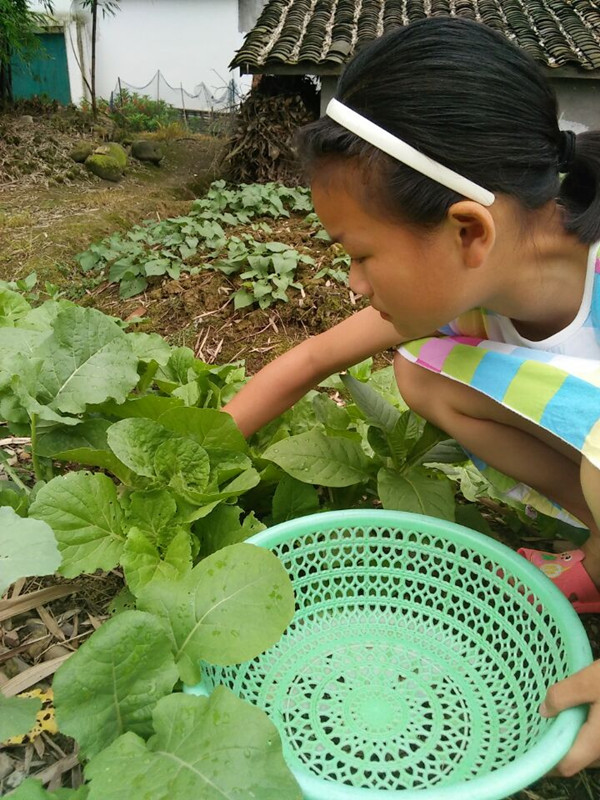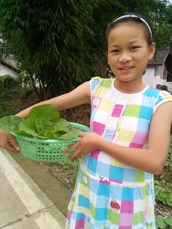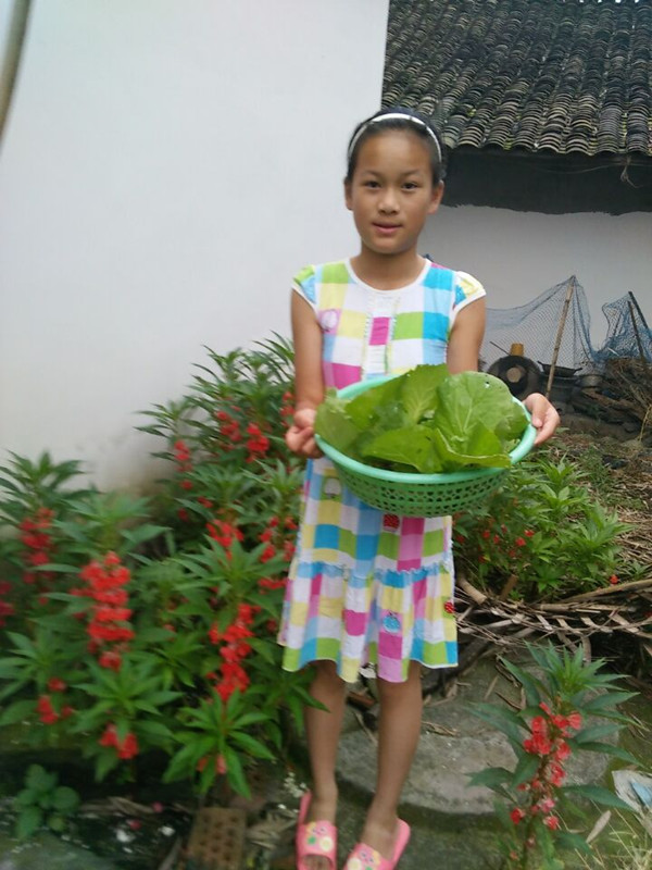 来到厨房,我就迫不及待地拿着蓝来到了水池旁,打开水龙头,开始认认真真地洗。我一片一片地洗,边洗边把枯叶、黄吐扔到垃圾桶里。我正洗得起劲儿,突然就触摸到了一个软绵绵的东西。我的手像被电击一样,猛地收回手。我拿起菜吐仔仔细细地端详一番,原来是一只大青虫,正叭在菜叶上享受"洗澡"的乐趣哩!吓得我把这片菜叶仍出好远。