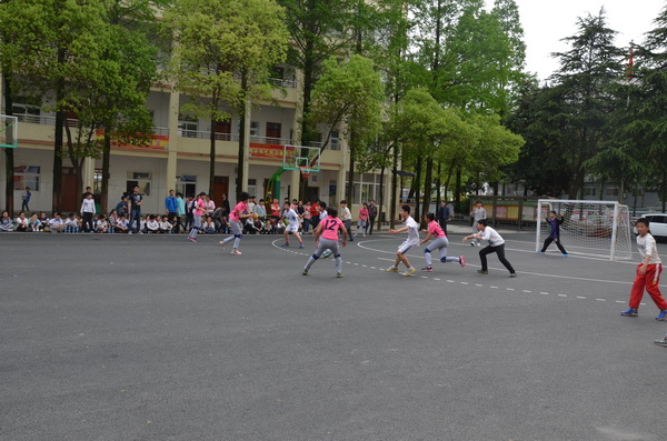 比赛中,双方队员奋力拼搏,互不相让,各有攻守,两队凭借扎实的基本功、默契的配合使每一次的攻防都显得对抗激烈,他们精彩的表现不断博得场边观战师生的喝彩。