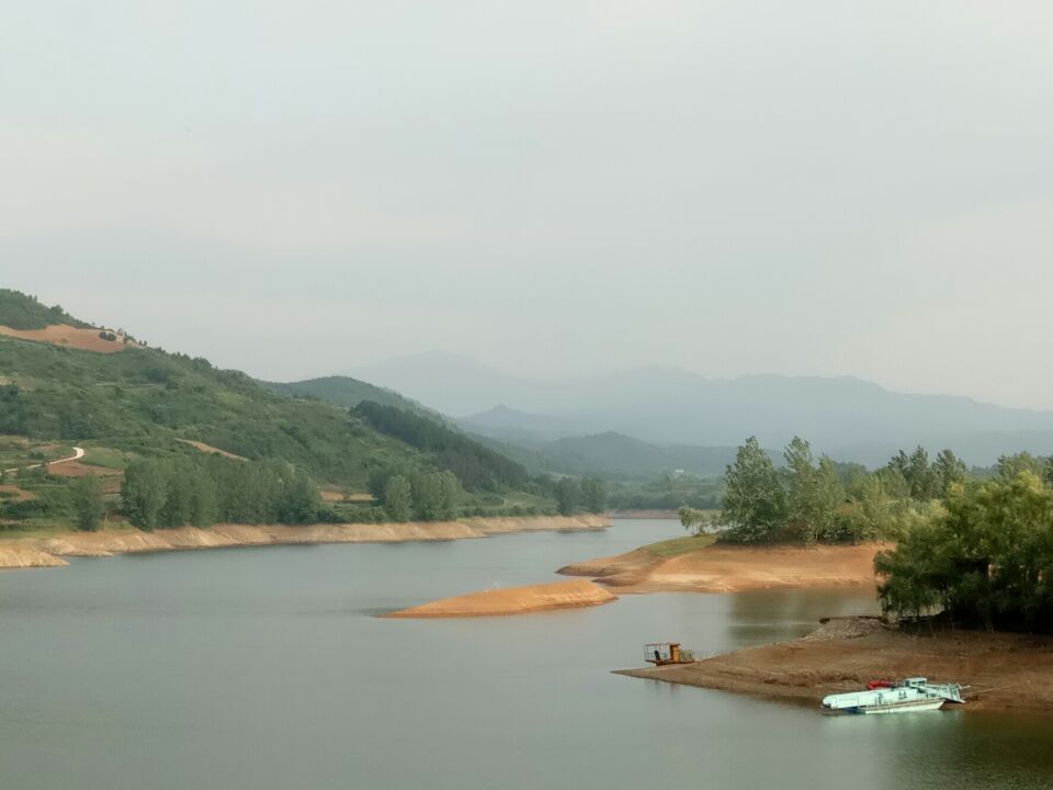 干旱时间太久了,河水下降很快,很多,大片的泥土裸露出来了,盼望着雨快来,快来!