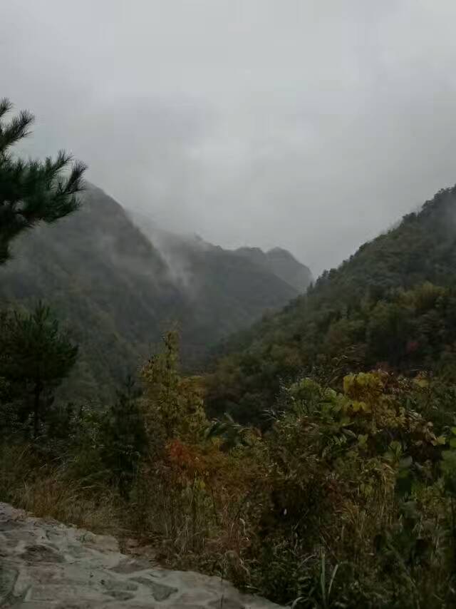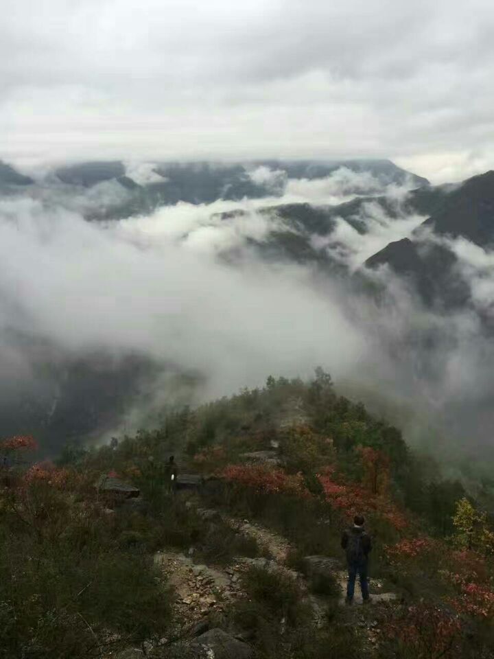 雾气缭绕,给人以仙气飘飘之感。立足于偌大的苍穹之下,目视对面斑斓的山峦,多想亲手揭开它那神秘的面纱,一睹倾世容颜。辽阔的天地间,山峦连绵起伏,层层叠叠,山早已不再是夏日里的盈盈翠色,反倒多了些许星星点点的红色和黄色,略带沧桑。