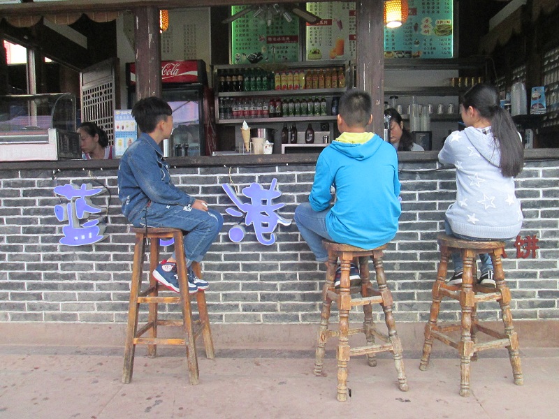 吃了面,我们一家三口就各自活动了,爸爸去河边茶铺子找他的朋友喝茶去了,我就和妈妈一起去农贸市场买东西。 我跟着妈妈这个摊位看看,那个摊位瞅瞅,买了几样钟意的蔬菜。之后妈妈说要去街上的服装店看看,我不想去,就一个人去逛街找我的伙伴了。 从农贸市场出来,我来到古镇的小广场,在文峰塔附近转悠,很快,我就看见我的小伙伴了。我们一起去转老街,在这个铺子里看看,又到那个铺子里瞧瞧。 老街没有了沿街摆摊的,显得清净多了,来往显得很轻松,可以尽情地观看两旁古老的民居。 我们来到河边,在一个饮料店买了饮料,坐着,一边喝饮料一边欣赏河边的风景。