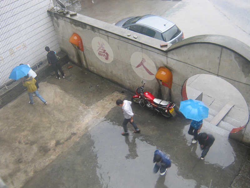 抬头仰望天空不知是谁把天空浓浓地涂上了墨汁,我清楚地看到雨愈下愈小,那水的声音也随之愈来愈小,我有些舍不得,于是拿出几个碗去接雨水。雨停了,我把碗拿回家里,拿出一支笔,在碗的边沿上敲了起来,“叮咚叮咚”这声音将欢笑送得很远很远……