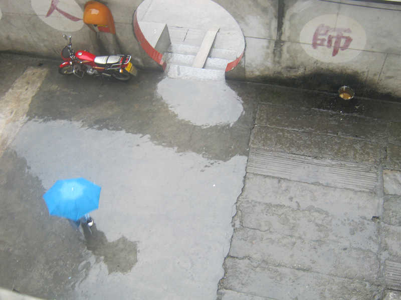 我童心涌起飞快的拿出一个拿出一个塑料袋,放在雨水滴落之处的房檐下,一阵“通通...扑通...”的声音传入耳鼓,我不禁扑哧笑出声来,这水落在袋子上的声音,是如此的深沉,好似美妙的琴声,软绵绵的,又不缺乏深沉与粗旷。