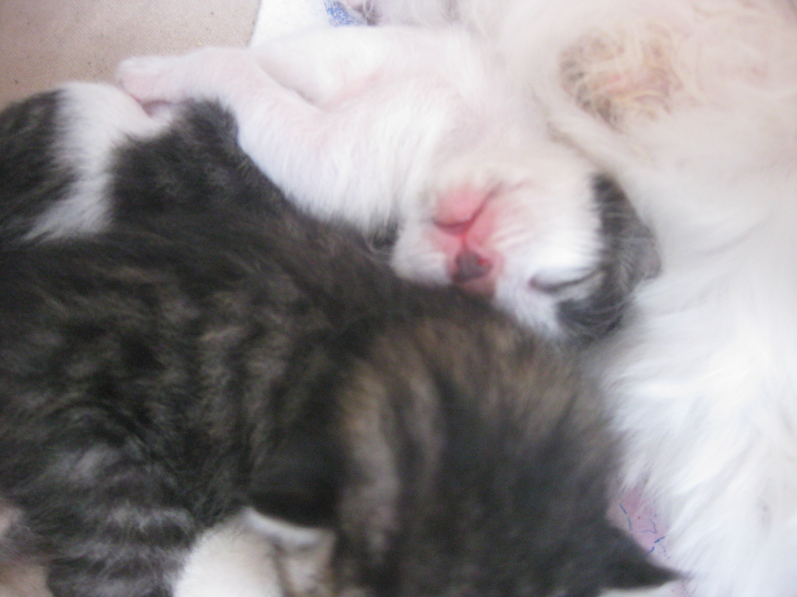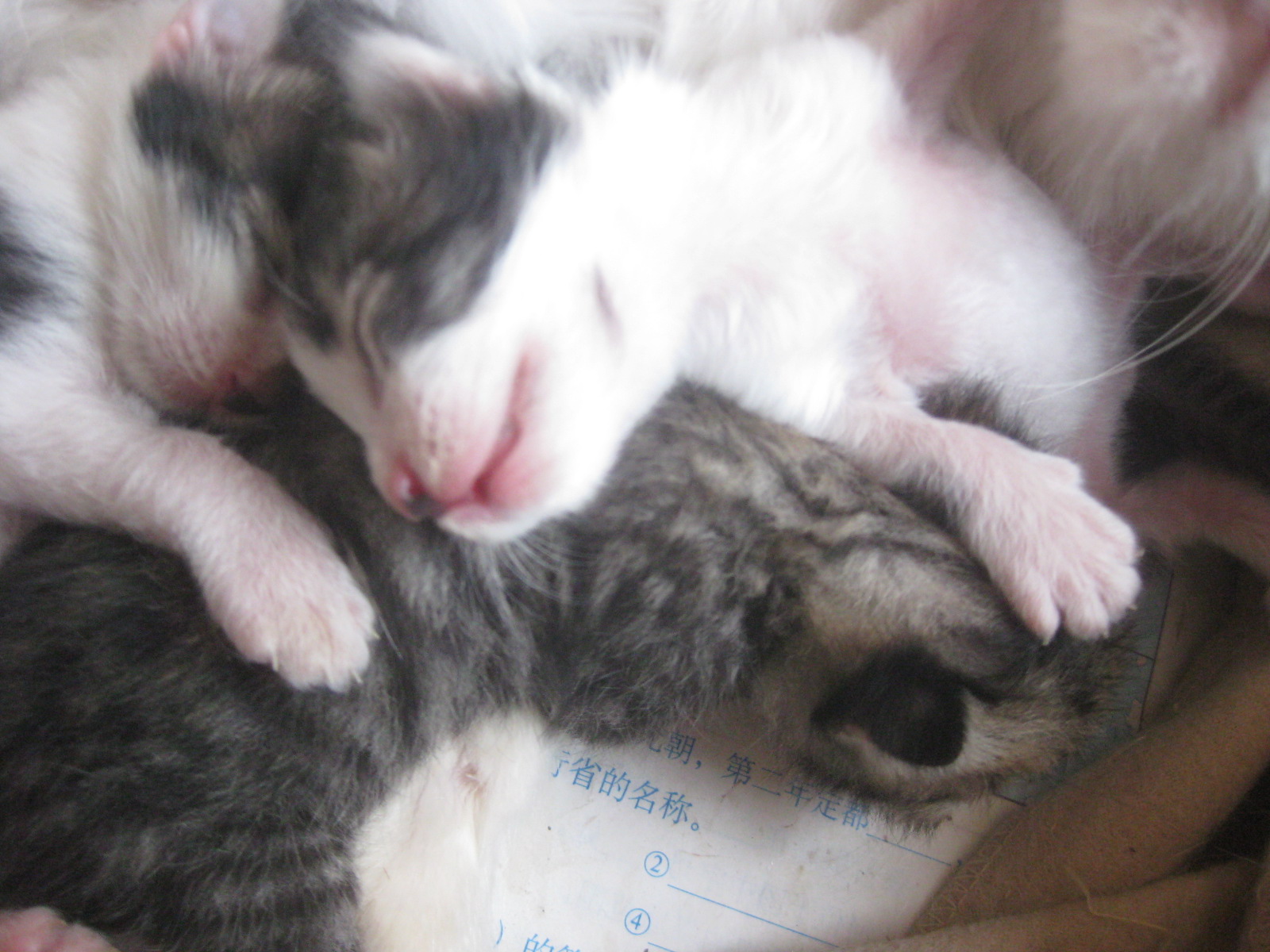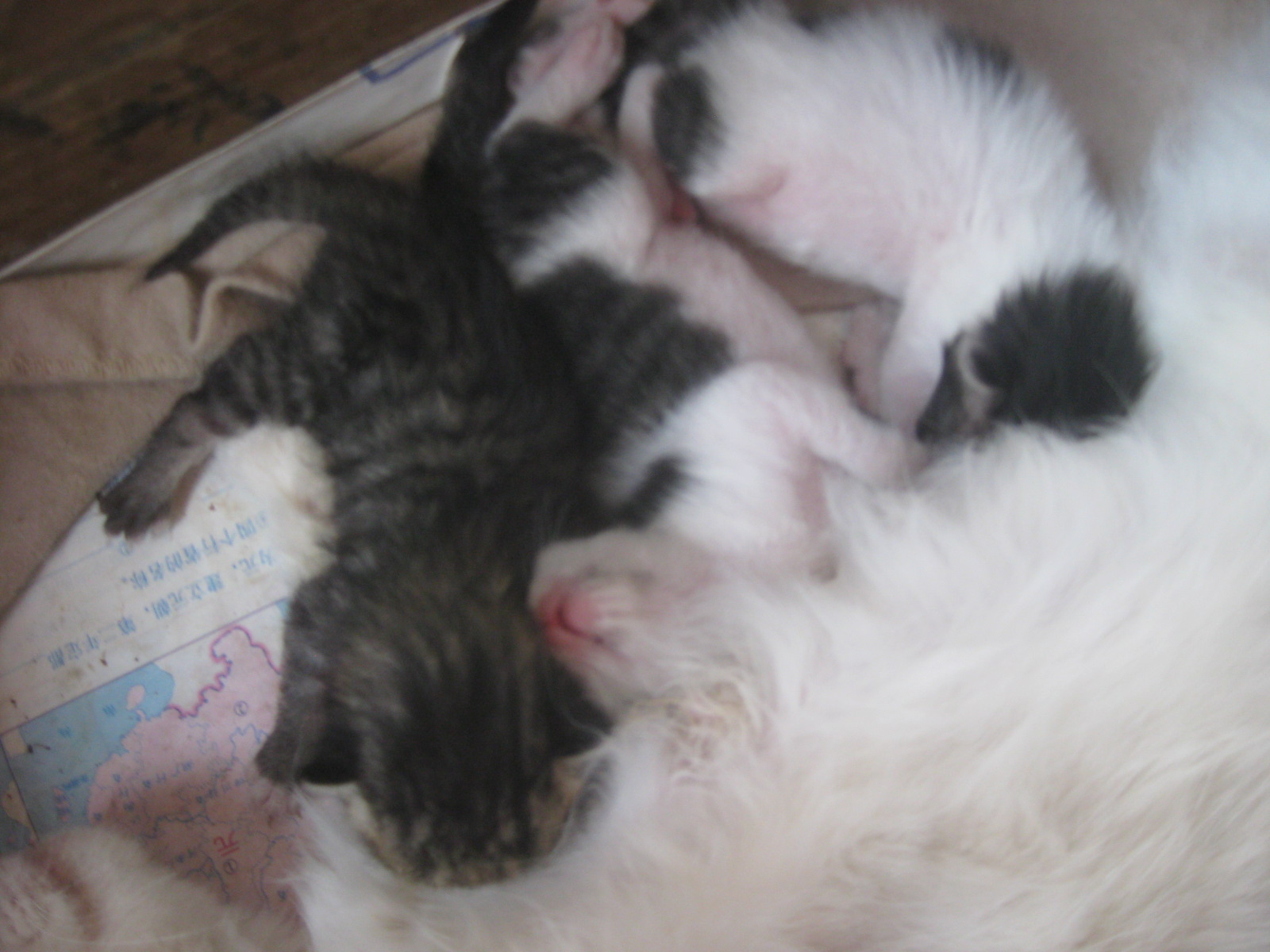 这三只小猫可爱极了,生下来就比一般小猫仔都大一点,它们的毛很长,妈妈说,它们长大肯定是长毛的。我时不时会出来摸一摸,因为我无法形容对它们的喜欢。