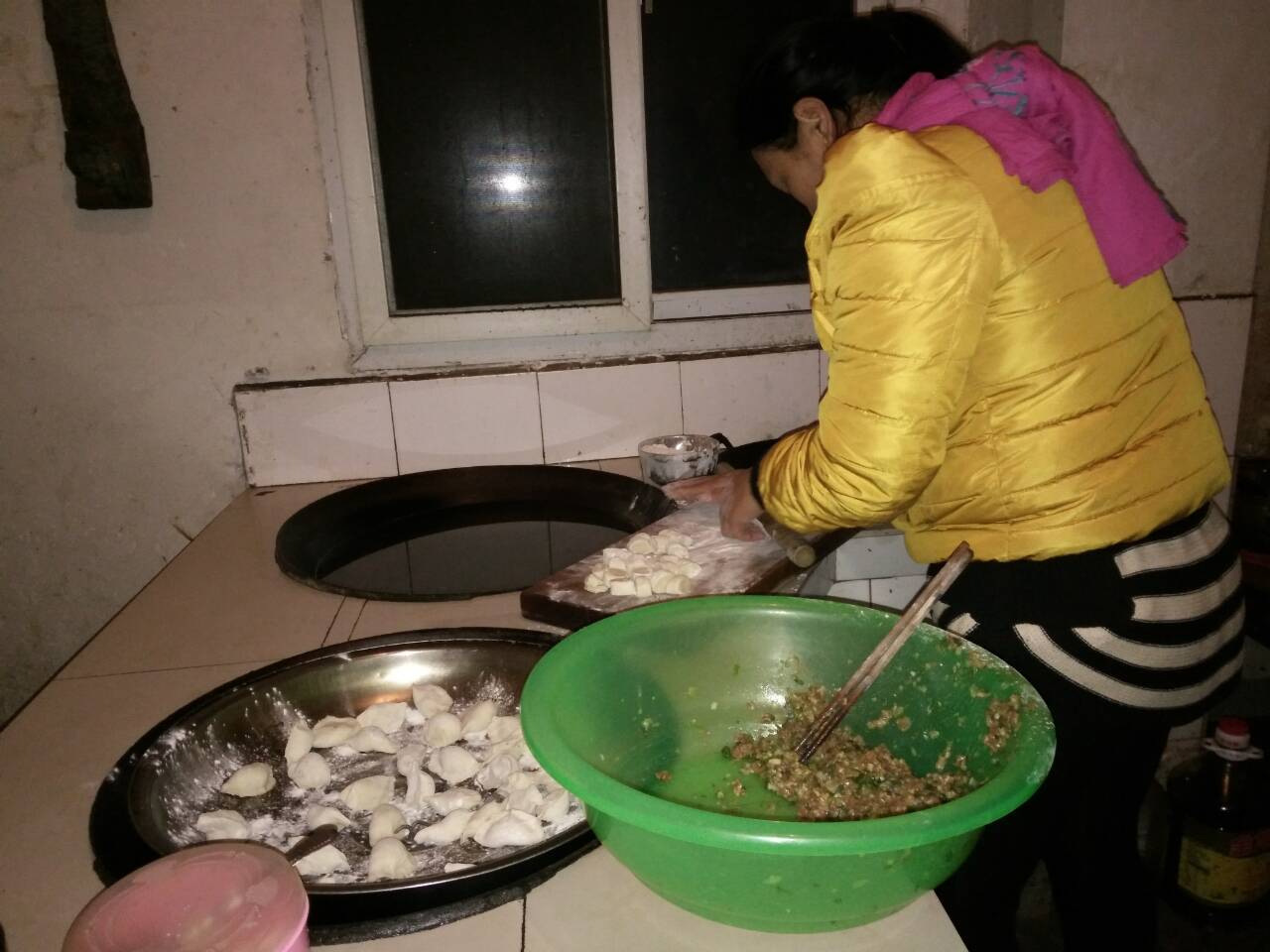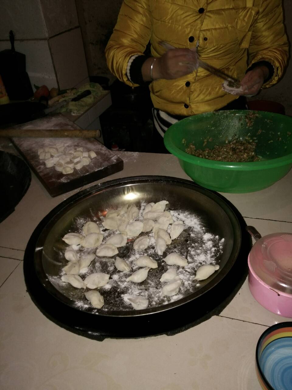 首先,做饺子馅。先把瘦肉都剁成沫,再把韭菜和豆腐也切成小块,把韭菜和豆腐一起混入肉末里,放了适量的盐、酱油、味精,然后搅拌均匀就做成了饺子馅。一切准备就绪,接下来可以包饺子了。妈妈左手拿着饺子皮,右手蘸了一下水,沿着饺子皮的边缘擦了半圈,然后手拿着筷子,把饺子馅夹一点到饺子皮里,再用手稍微捏了几下,一个像模像样的饺子就做成了.饺子形状十分好看,让人看了就垂涎欲滴。我也学着妈妈的样子,做了起来,可是我折腾了很长时间,也没做出个像样的饺子,妈妈忍不住哈哈大笑起来,但我毫不灰心,又拿起饺子皮,按照刚才的步骤,更加认真的做起来,一遍又一遍,渐渐地成形了,我妈妈看着我的杰作,也不停地夸我:"有进步,加油!"