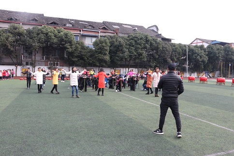 蔡老师深情的给我们讲述了这次节目的背景,一群运送茶叶的背夫途经朝阳湖镇,在飞仙大佛停下歇脚,故事就这样开始了!训练是很辛苦的,冬天的早晨寒风呼啸,手必须是兰花指,胯必须顶出来,每个动作都必须规范,每练一个动作需要重复三到五遍,接着再与前面的动作连起来再练,不断练习巩固,我的手已经僵硬了,腿也痛了,腰也酸了,但还是坚持下来了!我最喜欢的是后面的柑橘娃娃,这两年因为蒲江的耙耙柑变得有名了,所以今年把这个地方特色加了进去,孩子们露出灿烂的笑脸,就像真正的柑橘,我真想抱着咬上一口!